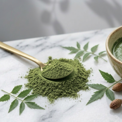 En cosmética natural, el neem en polvo se obtiene al secar y pulverizar sus hojas, conservando así gran parte de sus compuestos naturales.